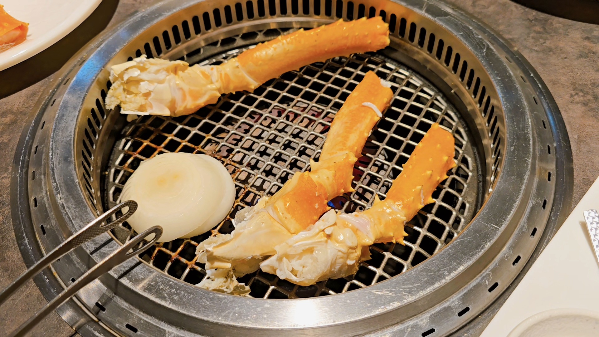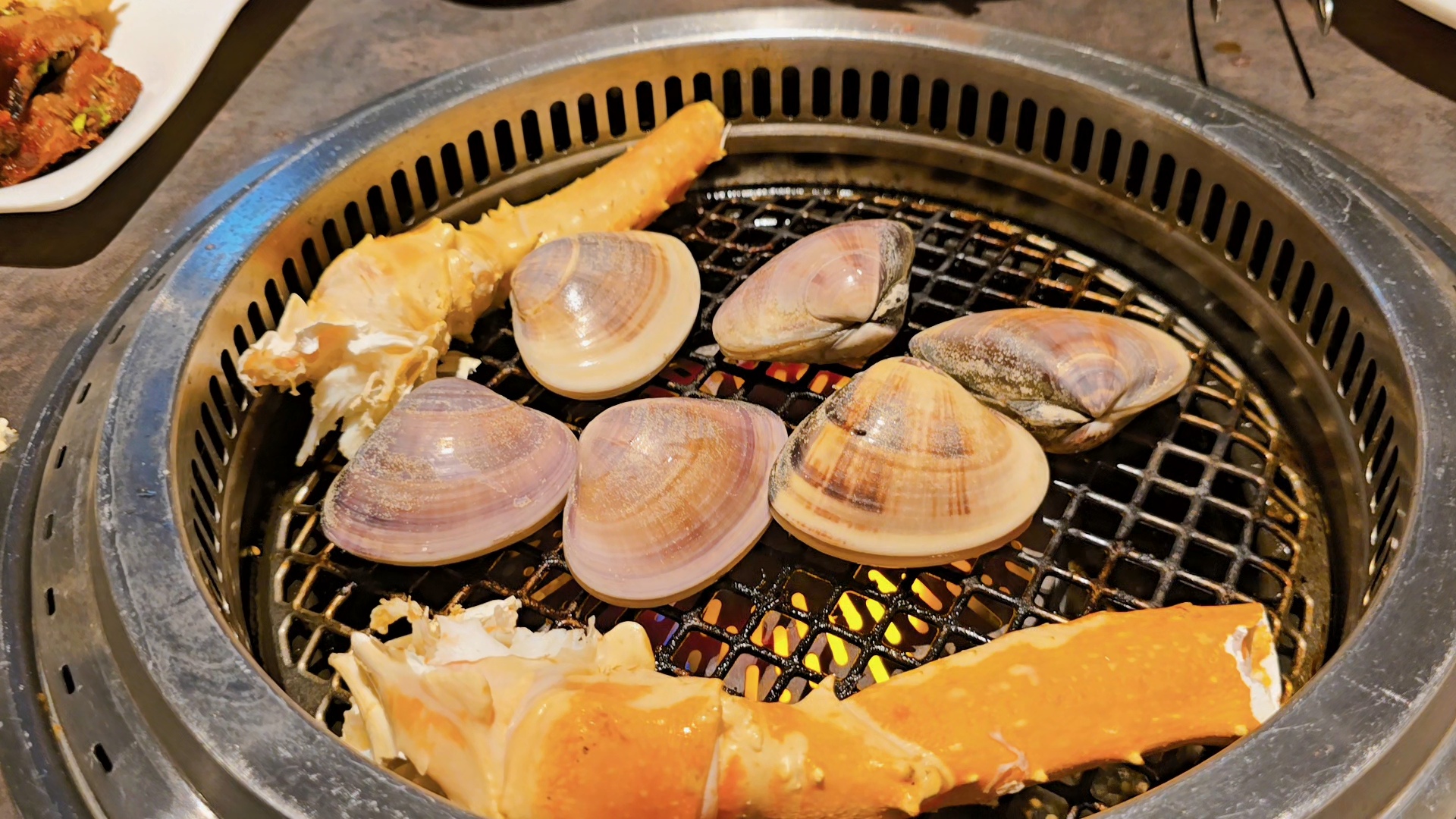 킹크랩을 구우며 조개도 굽고