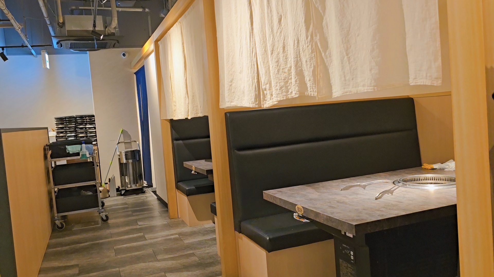 좌석은 노렌으로 반절 가려진 개인실과