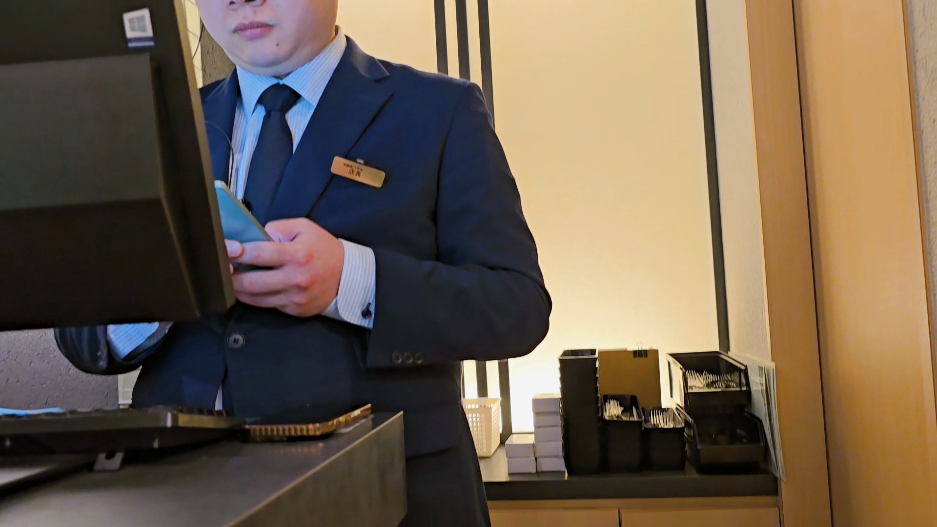 점장이라는 이름표를 단 직원이 예약을 체크해 준다