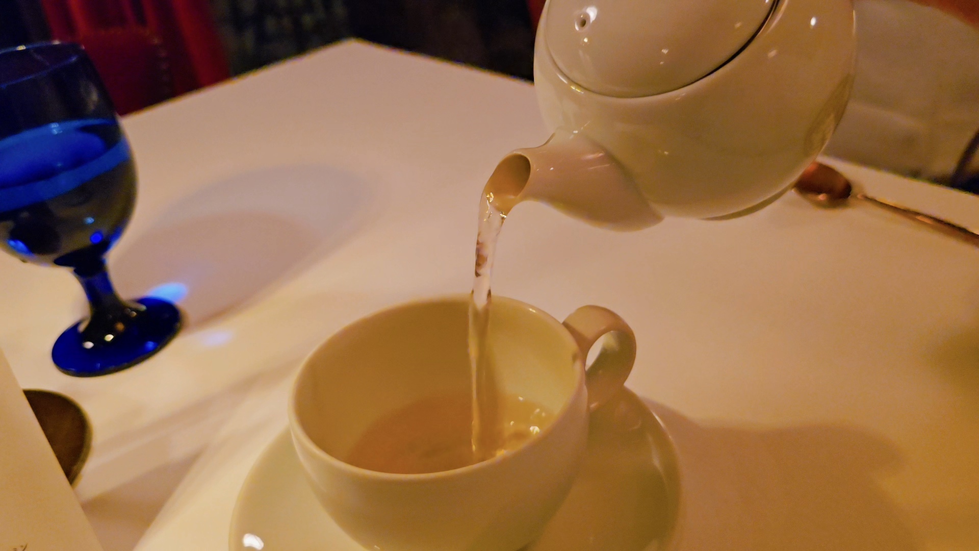 분위기 있는 장소에서 나의 만찬을 기대하고 있다.