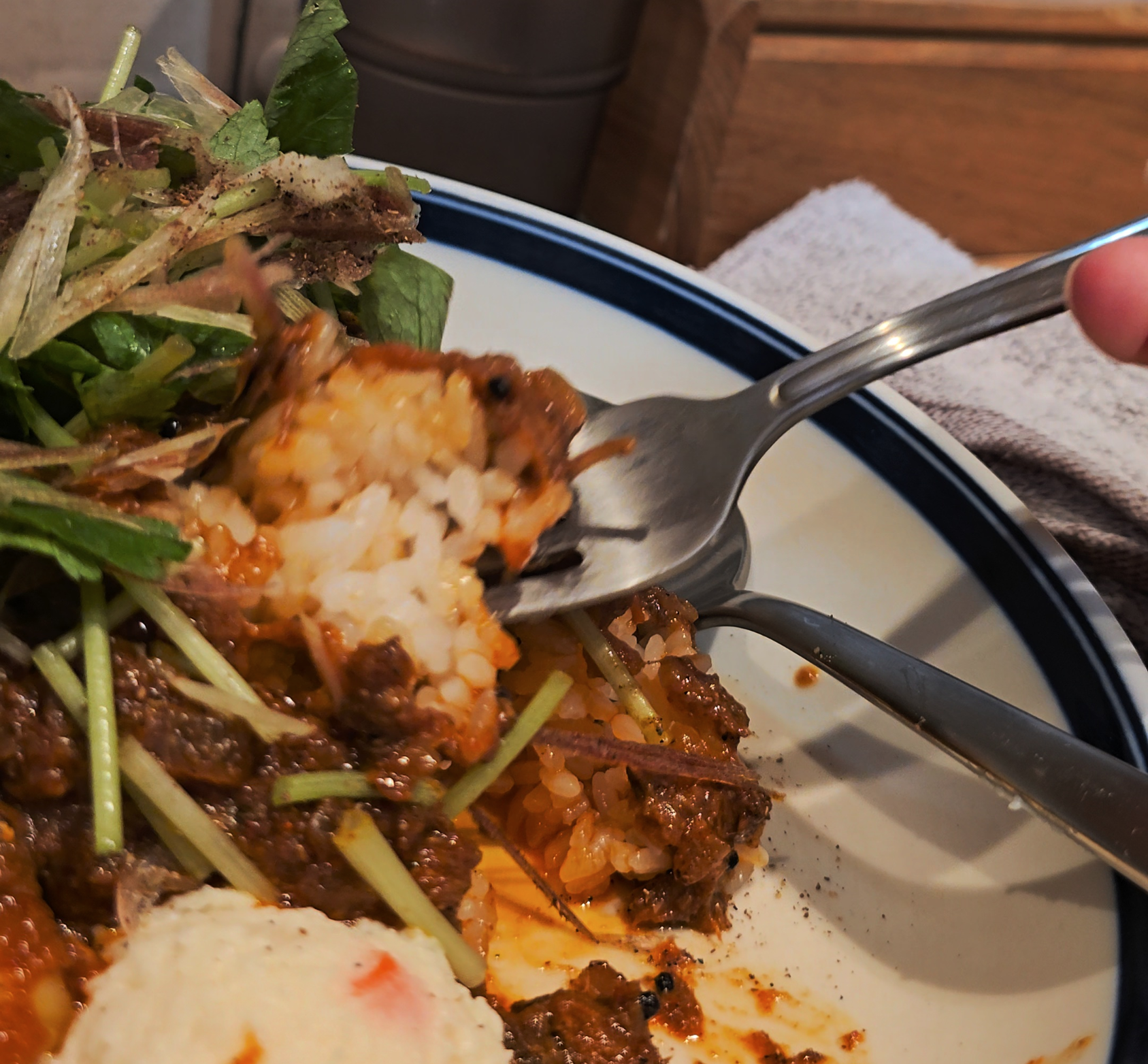 좋은 감칠맛과 카레의 스파이시가 어우러졌다.