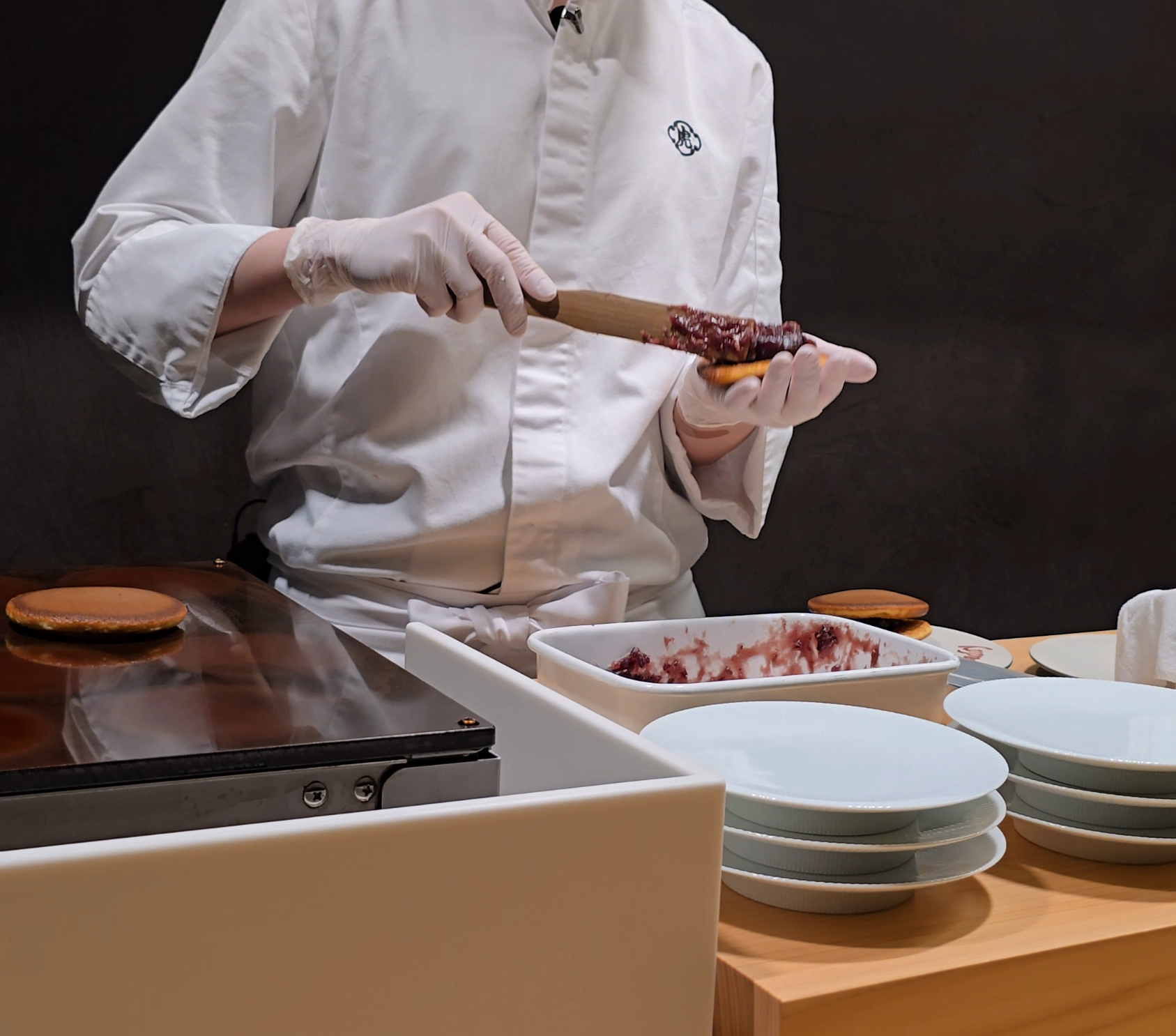 카운터 자리 바로 앞에서 도라야키를 굽는 것을 볼 수 있다.