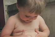 전신노출하고 찍었던 작은 남자 조카는 민망하여 상반신만 보냈는데..예전엔 부끄러워 하더니... 용감하게도 하반신도 보내라고 한다.