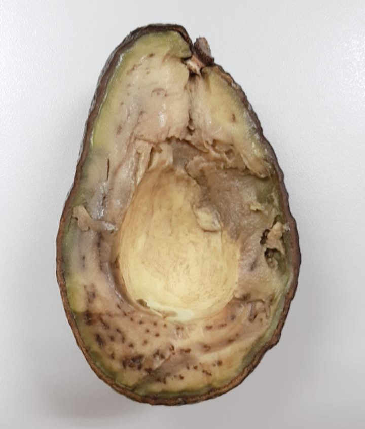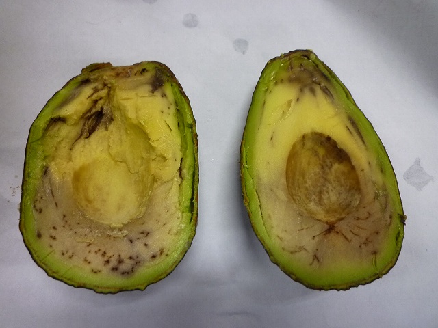 아보카도 속에 검은 반점이나 실이 아니라 전체적으로 검게 되었다면 저온장해의 가능성이 있습니다.