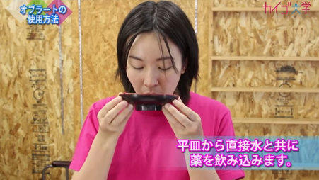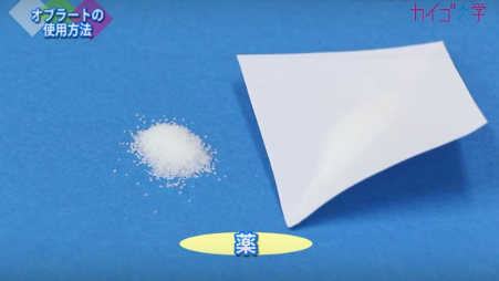 젖어있는 오브라트 위에 가루약을 중앙에 조심스레 몰아 넣고