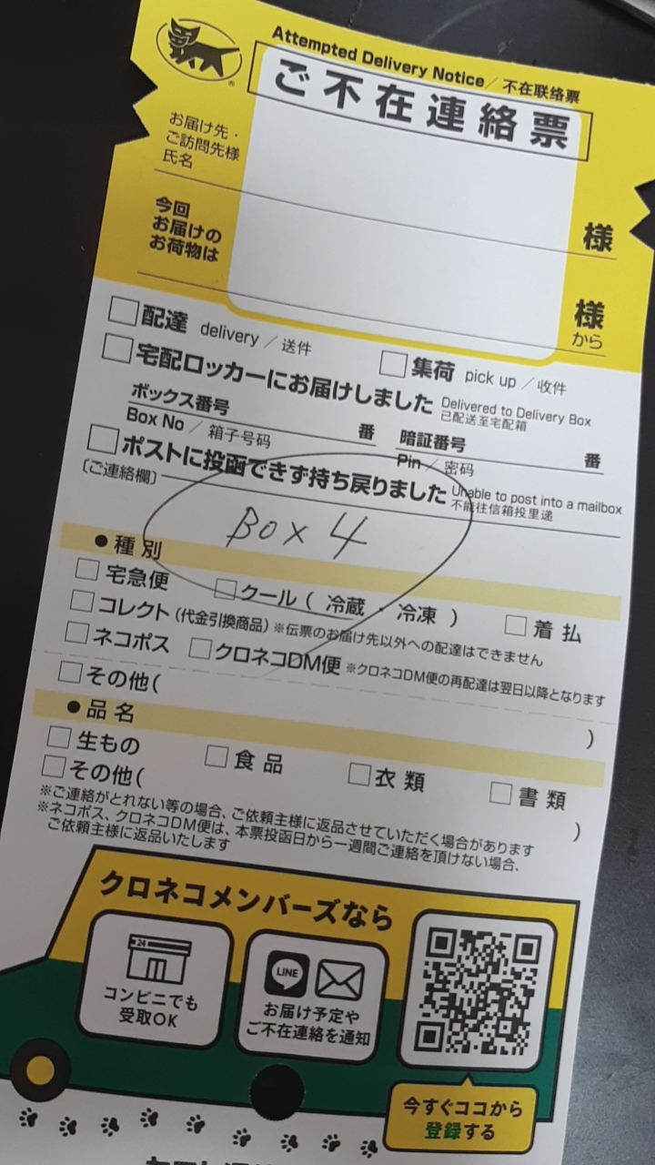 맨션 입구에 있는 택배 박스에 넣어주면