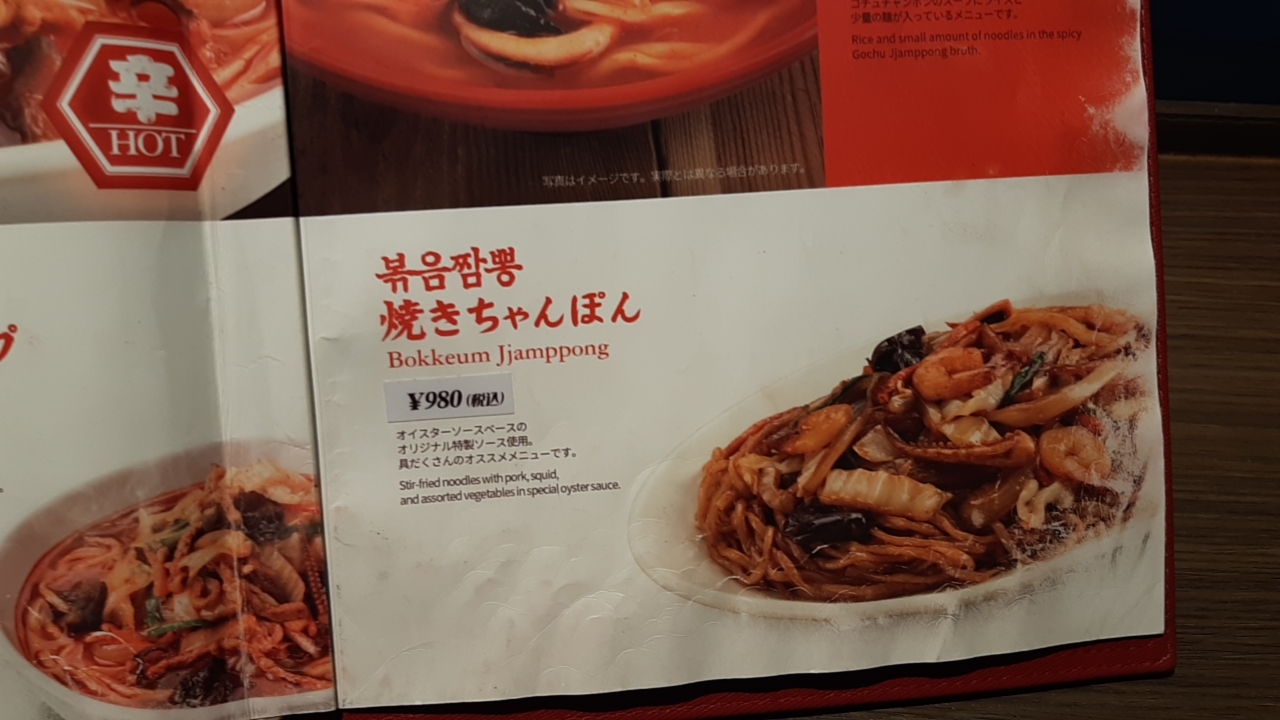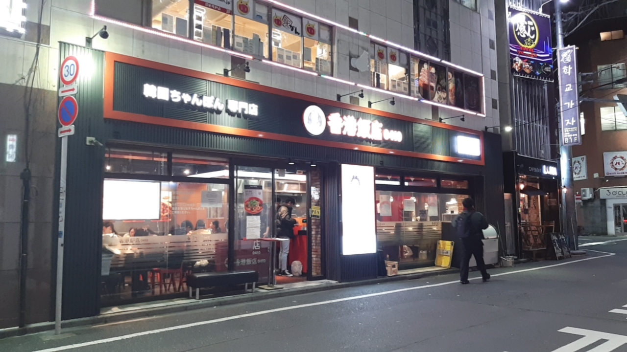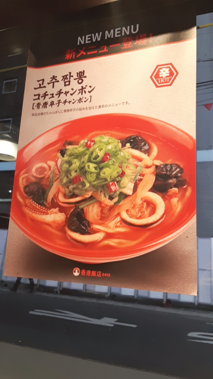 간판에 한국 짬뽕 전문점이라고 일본어로 써져있고, 그 아래 백 대표님 사진은 네온에 너무 밝게 나와버렸네~.