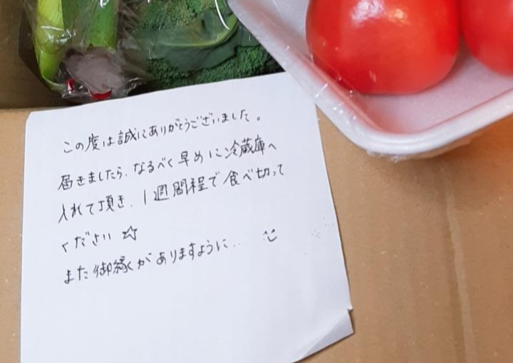 가게에서 손글씨 메모로, 구매 감사 메세지가 들어있다.