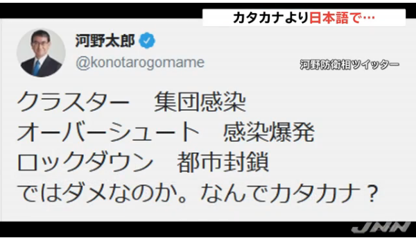 오사카 라이브 하우스 등에서 발생한 집단 감염을 클라스타 (cluster)감염이라 하고 이 추세라면 감염 폭발 이란 말을 오버슛(over shoot)..이라하고 동경도지사가 세련된 말로 동경 록다운( lockdown).. 이 도시 봉쇄.. 라고 하니.. 왜 어려운 말 쓰냐고 톡 쏜 거다. |