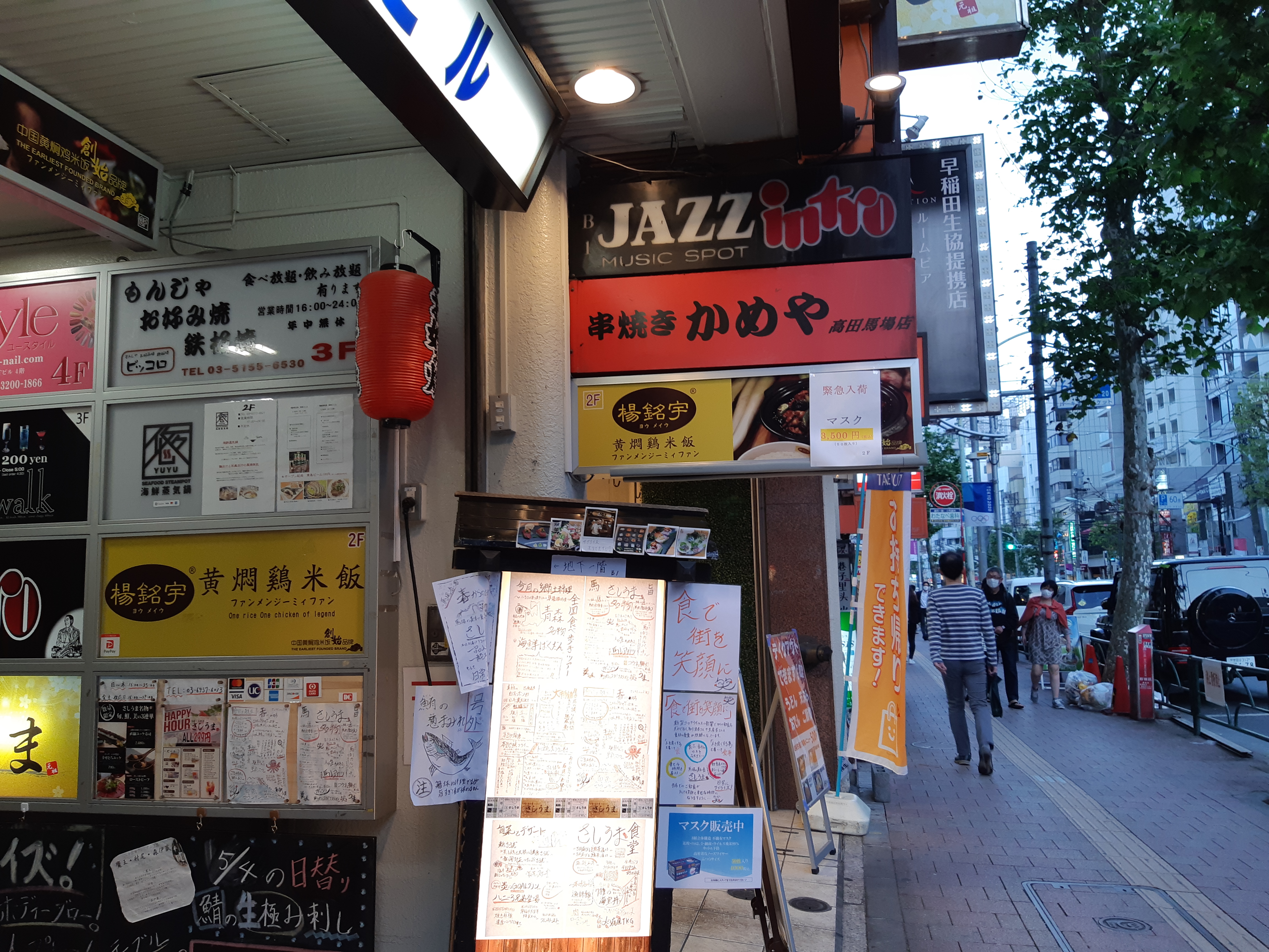 지나가다 보이는 도시락집, 선술집에도 마스크 있습니다 라는 안내장이 걸려있다.
