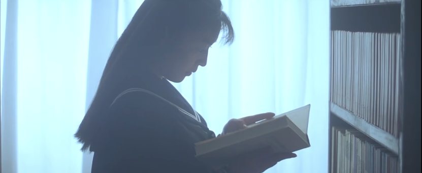 남학생 후지이 이츠키가 마지막으로 전달해준 책을 정리하러 간 여학생 후지이 이츠키..
