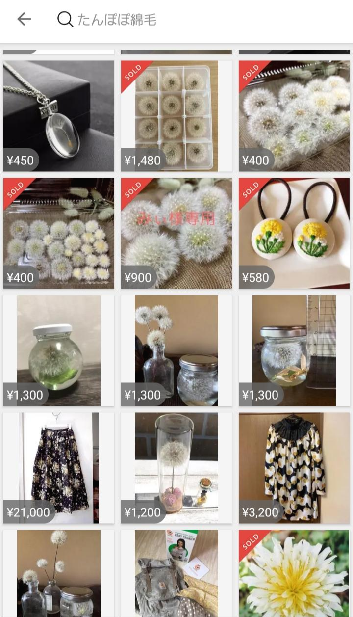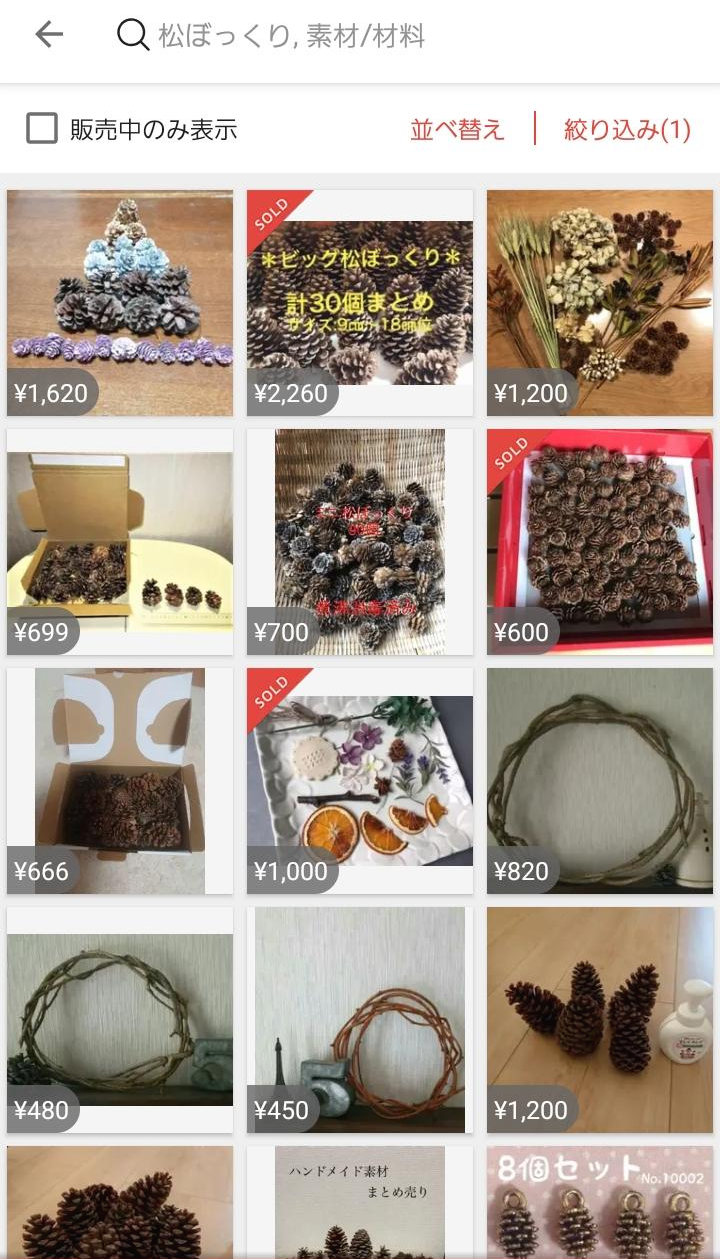 솔방울, 은행 잎, 단풍잎, 민들레 뿌리도 팔린다.