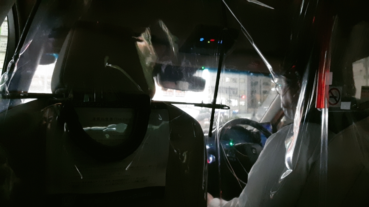 요새는 앞좌석과 뒷좌석 사이에 비닐을 설치하는 택시가 많아지고 있어요