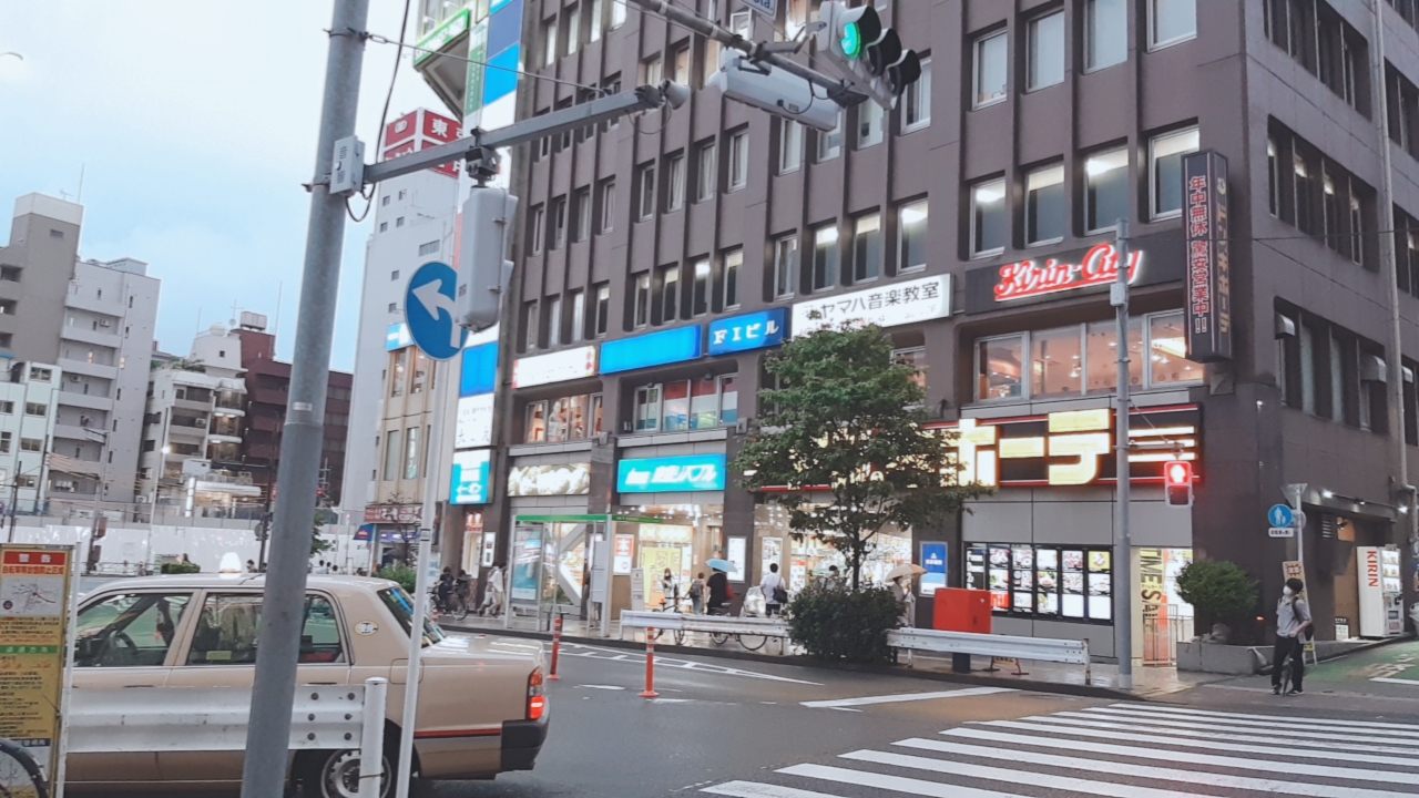 로터리 부근에 서점과 돈키호테, 각종 식당이 들어있는 FI빌딩.