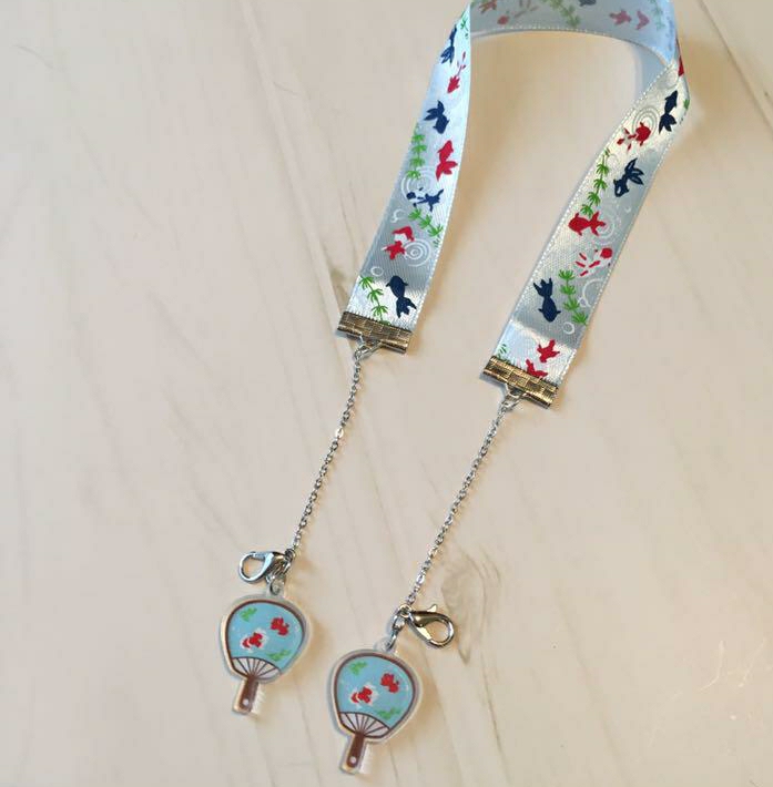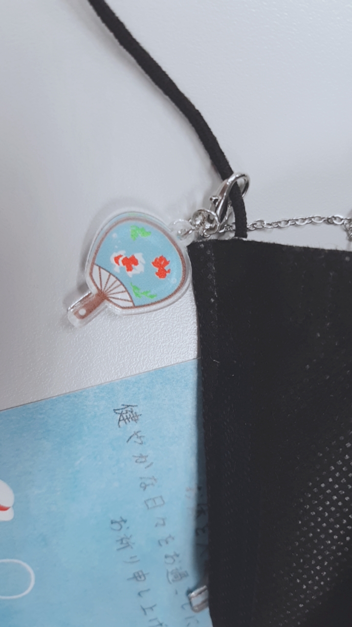 여름에 시원한 바람을 만들어 주는 귀여운 부채가 달린 스트랩.