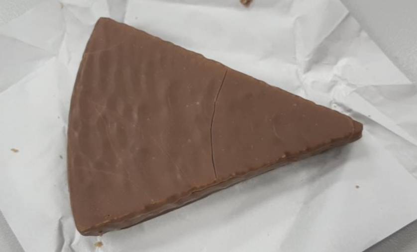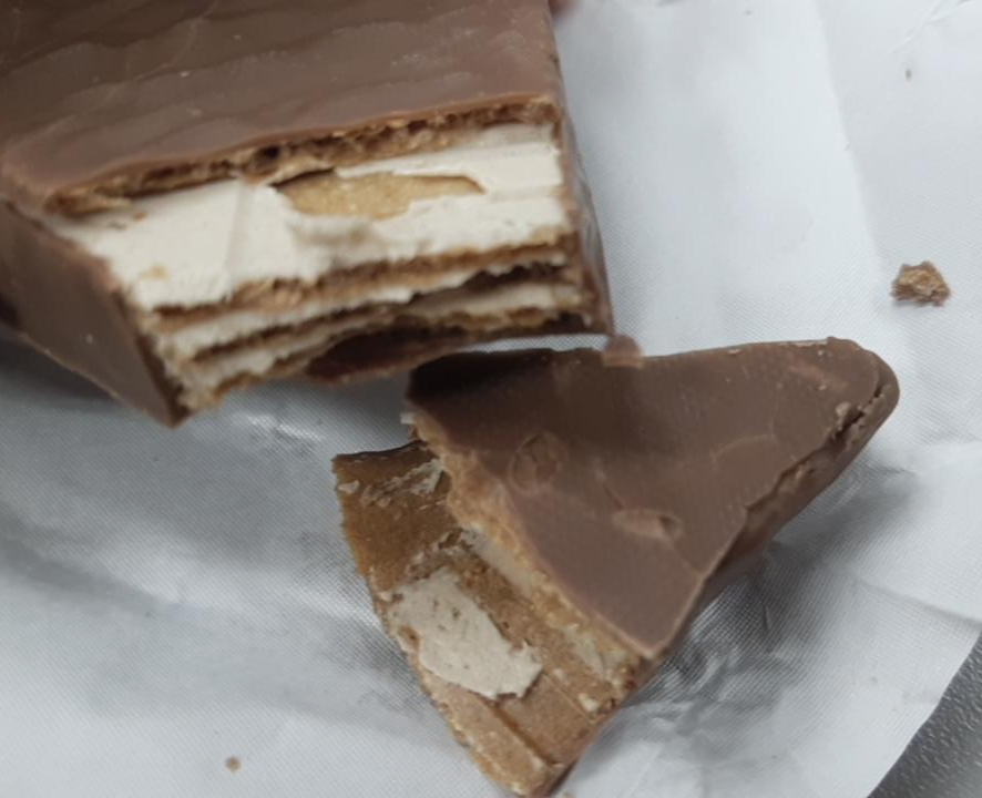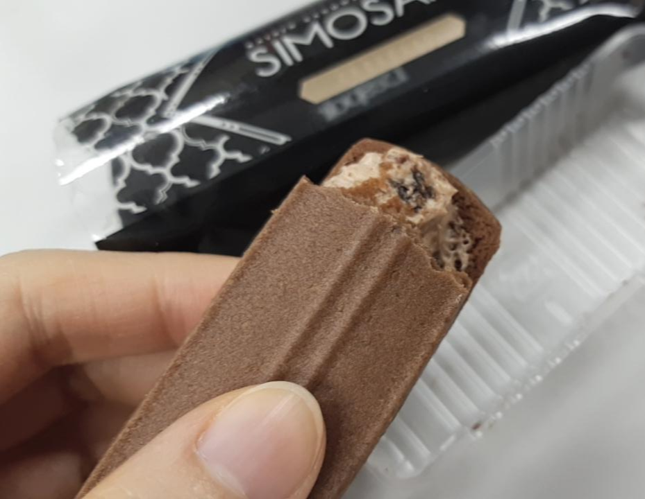 초콜릿 코팅된 비스킷 사이마다 크림이 발라져 있다.