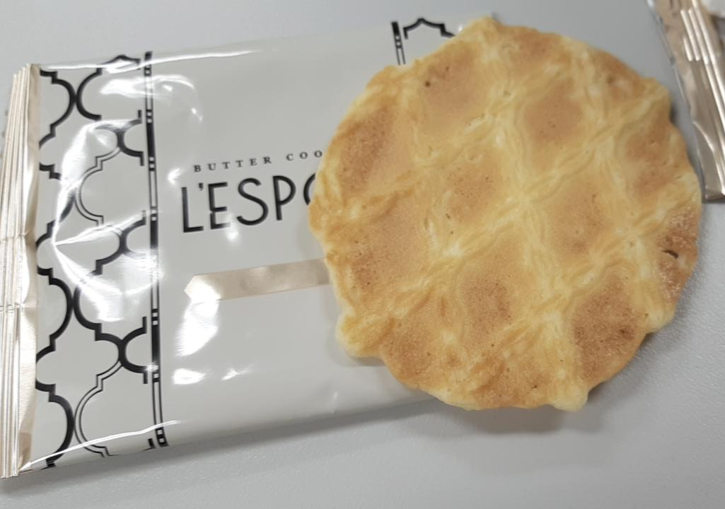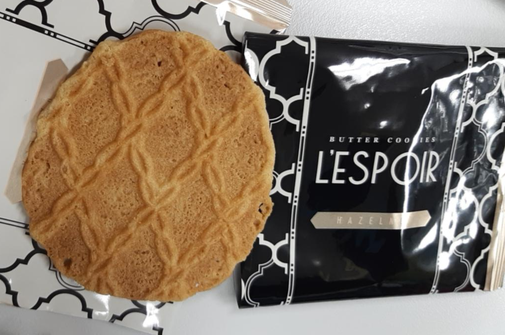 얇은 전병 사이에 살짝 크림이 발라진 과자..