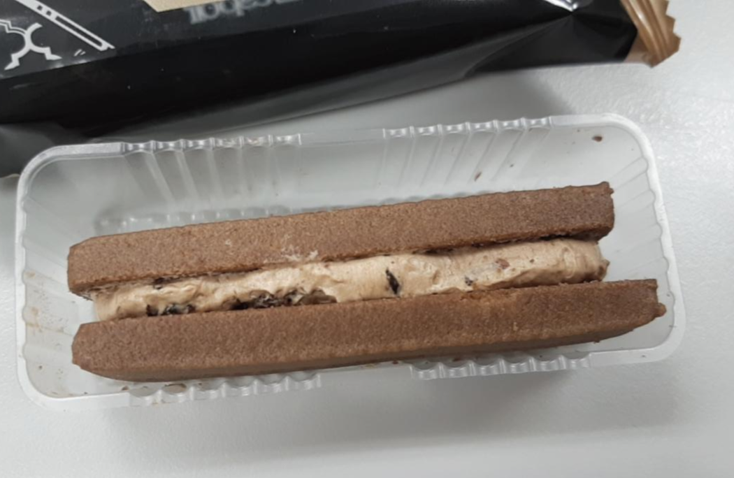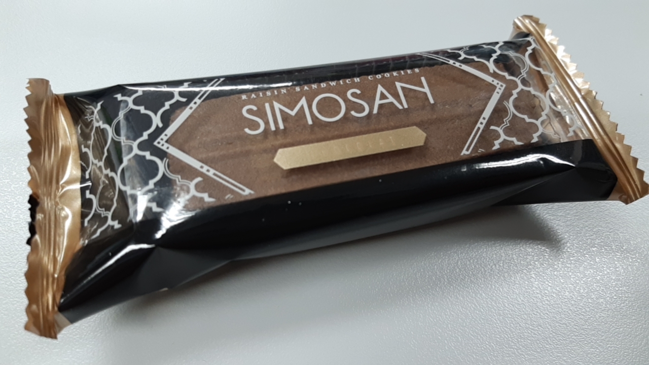 살짝 부드러운 빵 재질 과자 사이에 건포도가 들어있는 부드러운 크림