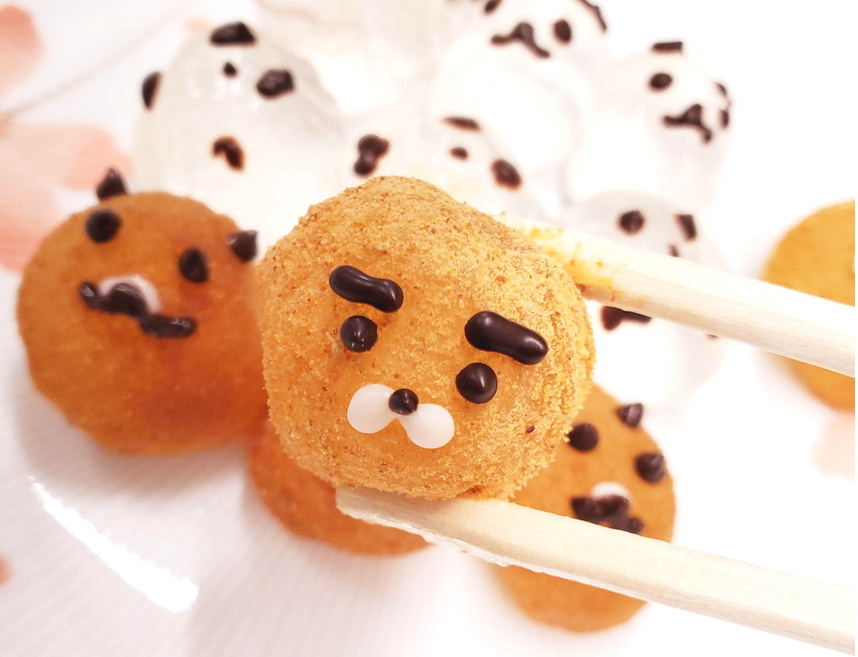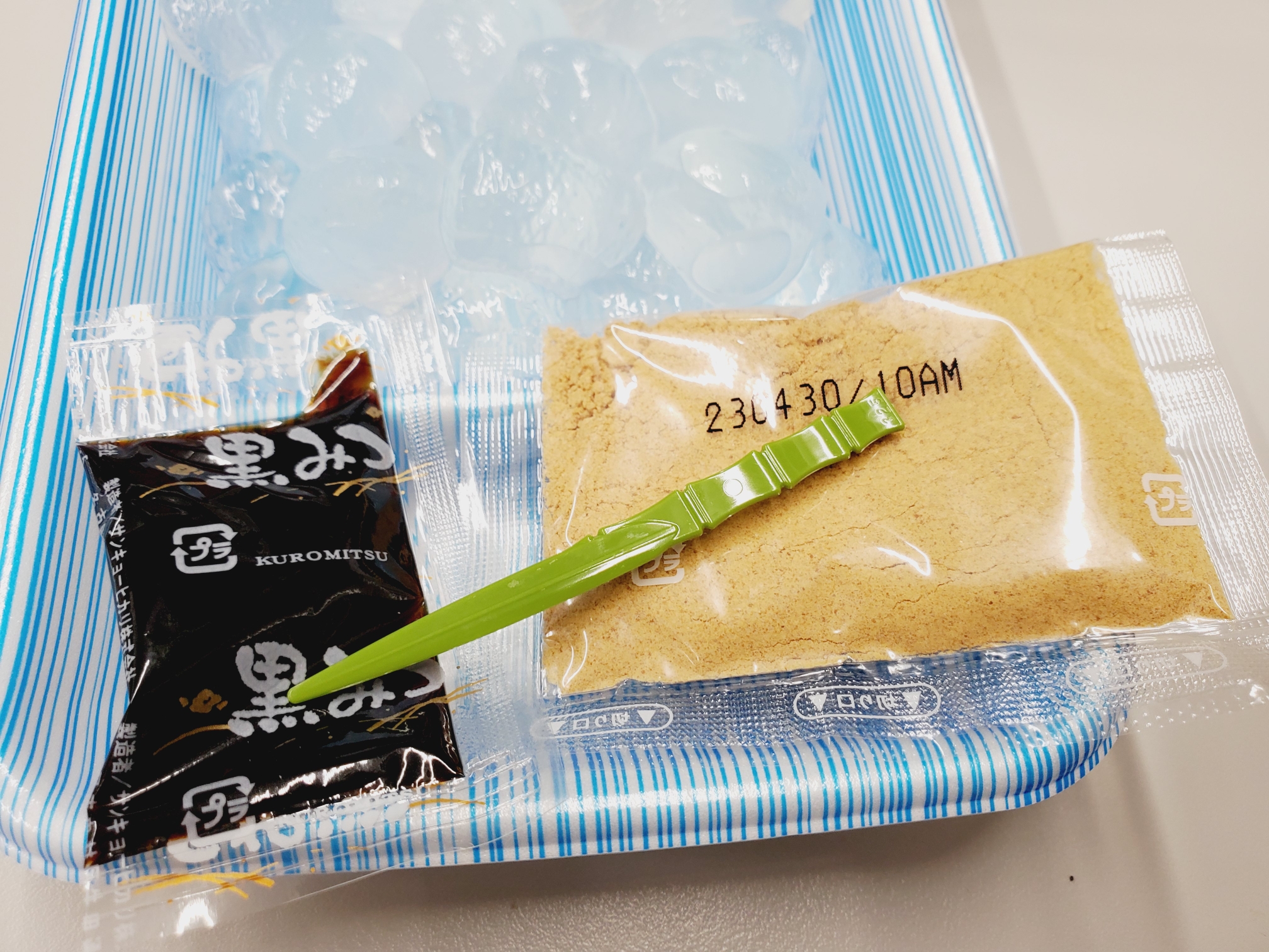 구성은 간단하게 물방울 떡과 흑당(꿀), 콩가루