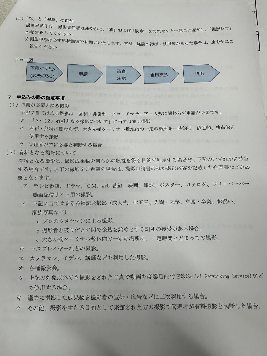 오산바시 촬영에 관한 이용 규칙 2022년 4월 1일 작성됨.