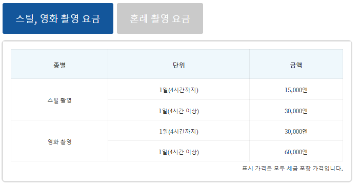 ➣ 스틸, 무비 촬영 요금(부가세 포함)