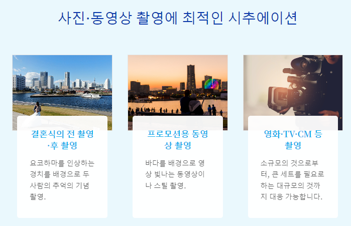 그 외, 슬로프·크루즈 데크·교통 광장·주차장 등의 촬영을 희망하시는 경우는 별도