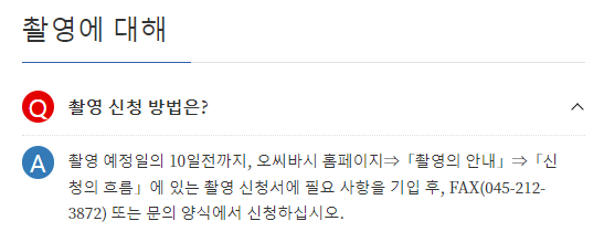 미리 촬영 허가를 받아야 하며 (10일 전 팩스)