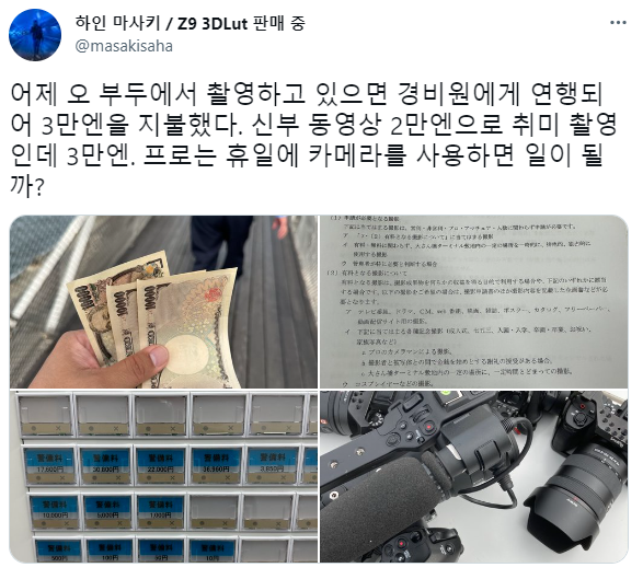 휴일에 취미로 찍어도 상업적 목적이라며 지불을 강요했다는.. ㅠㅠ