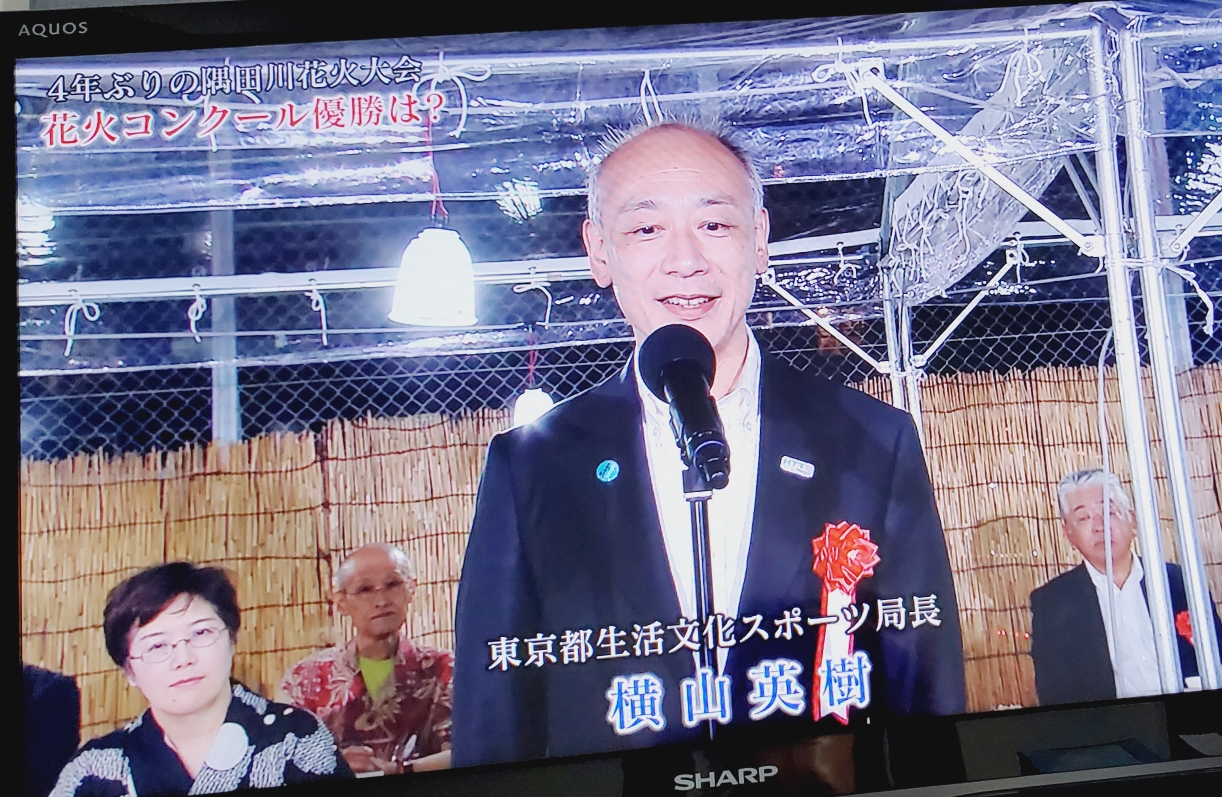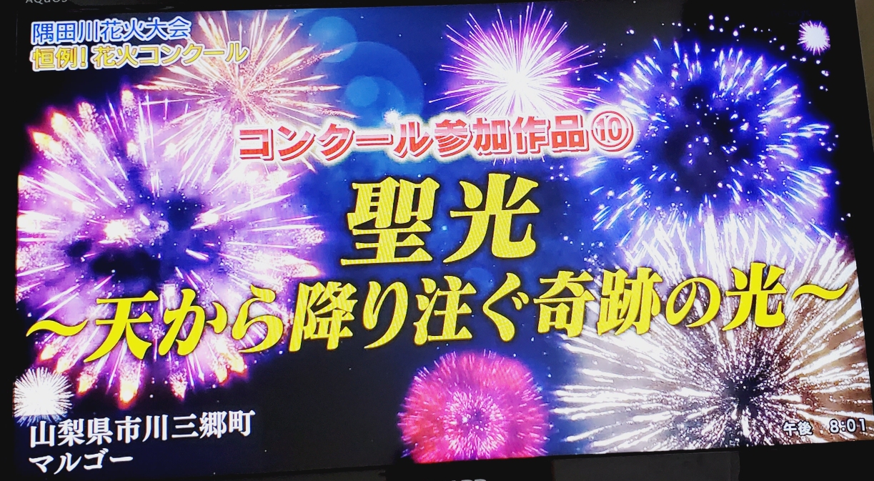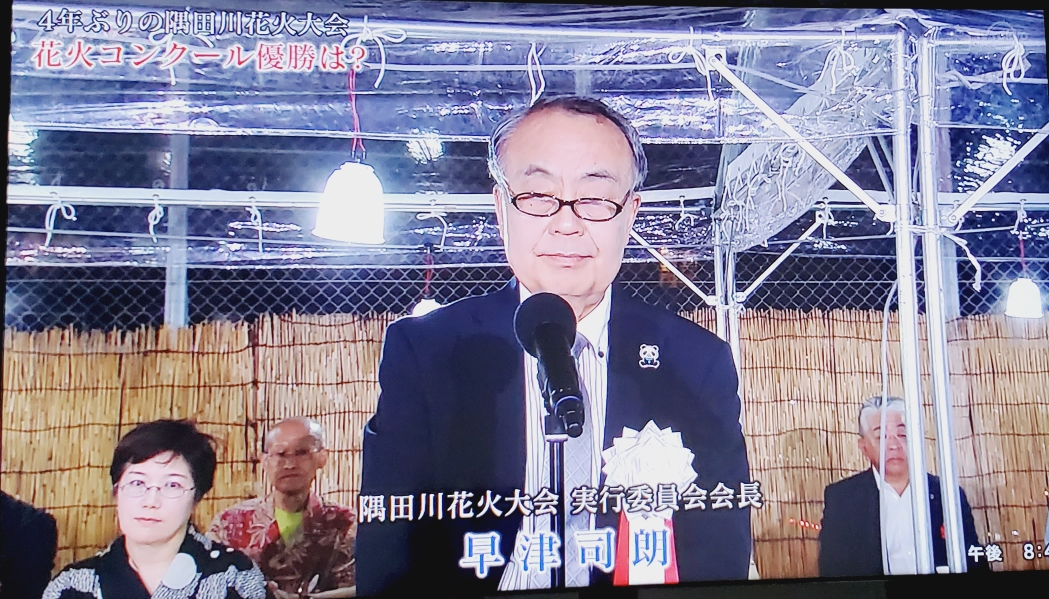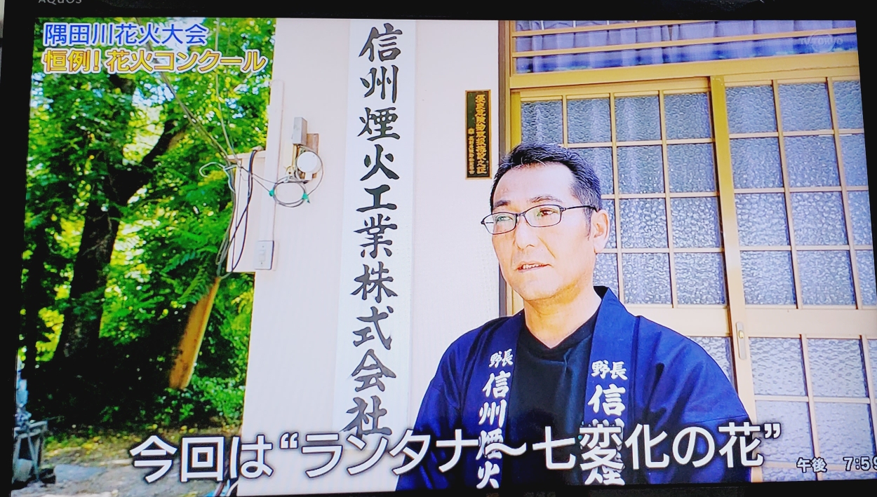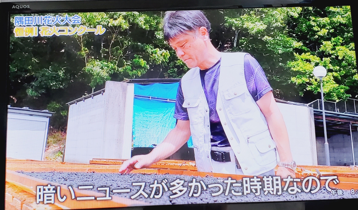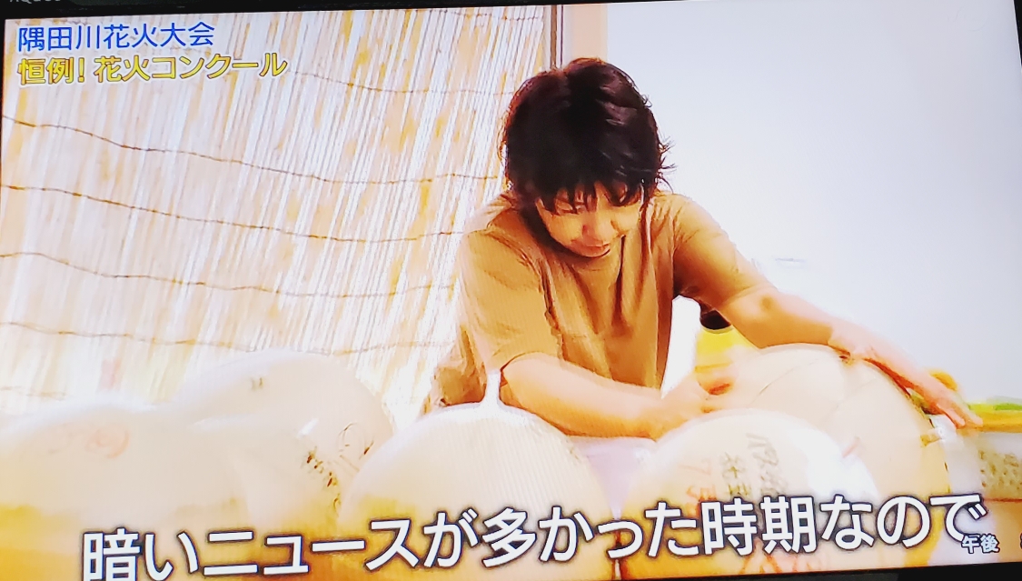 스미다가와 불꽃 대회에 각 파트별로 불꽃을 만들어내는 단체를 소개하고