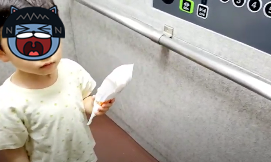 아이와 엄마는 왼쪽 엘베를 타고 올라가게 되었다.