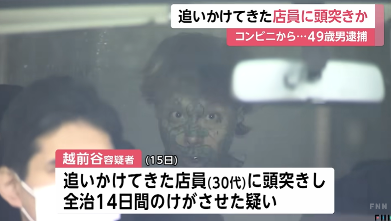 편의점에서 물건 훔치고 달아나다 쫒아온 점원에게 박치기..
