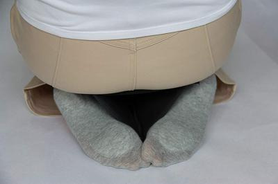 정좌로 무릎을 꿇고 앉는 자세는 다리를 안쪽으로 말게 만든다.