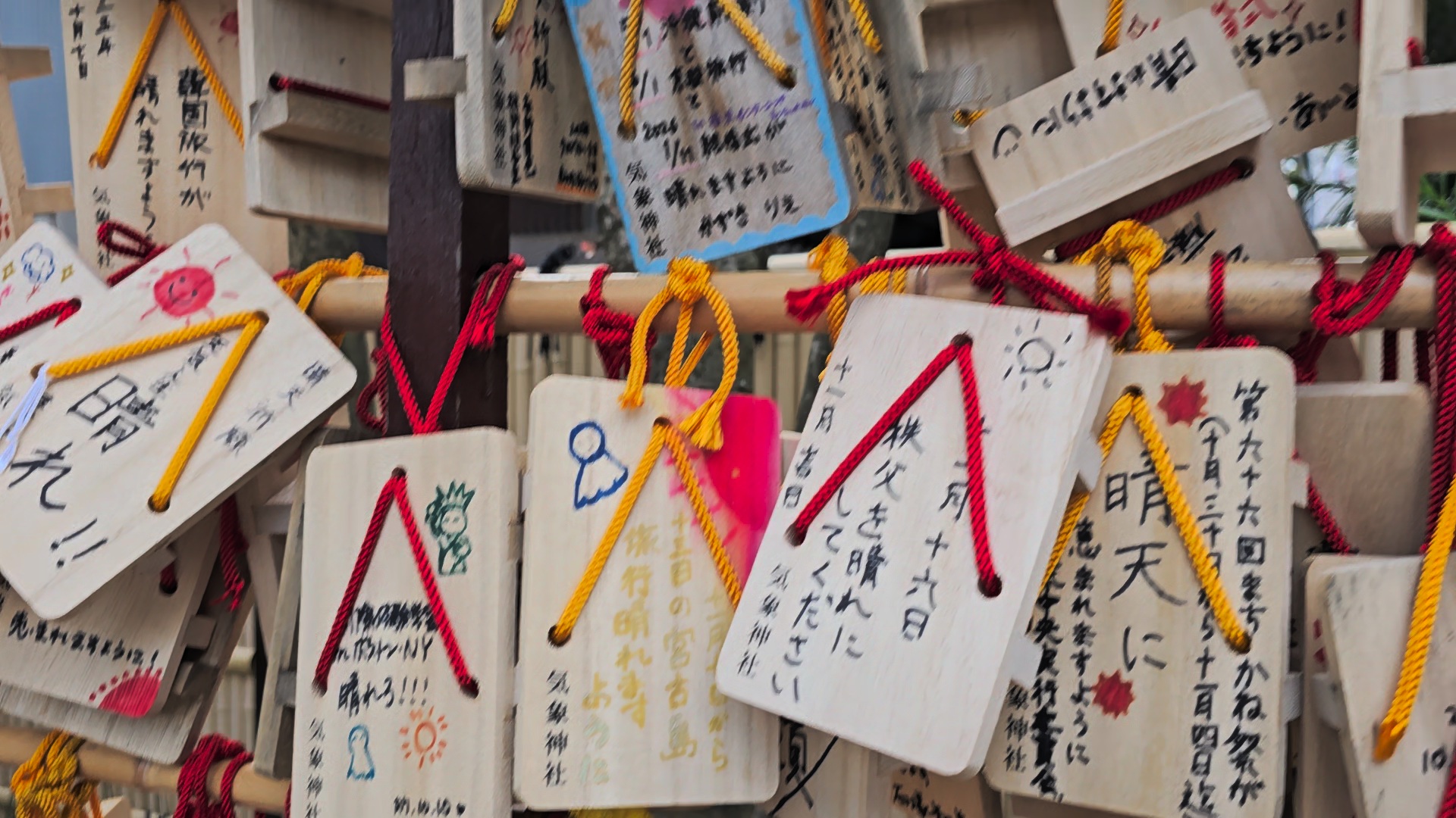 ‘기상·날씨’라는 테마로 인해 팬들 사이에서 자연스럽게 연결되어 방문지가 된 케이스이다. - 에마에 자신의 여행·운동 계획이나 ‘비 안 오게 해달라’ 등의 소원을 적어 묶어두면 재미있는 기념이될지도?