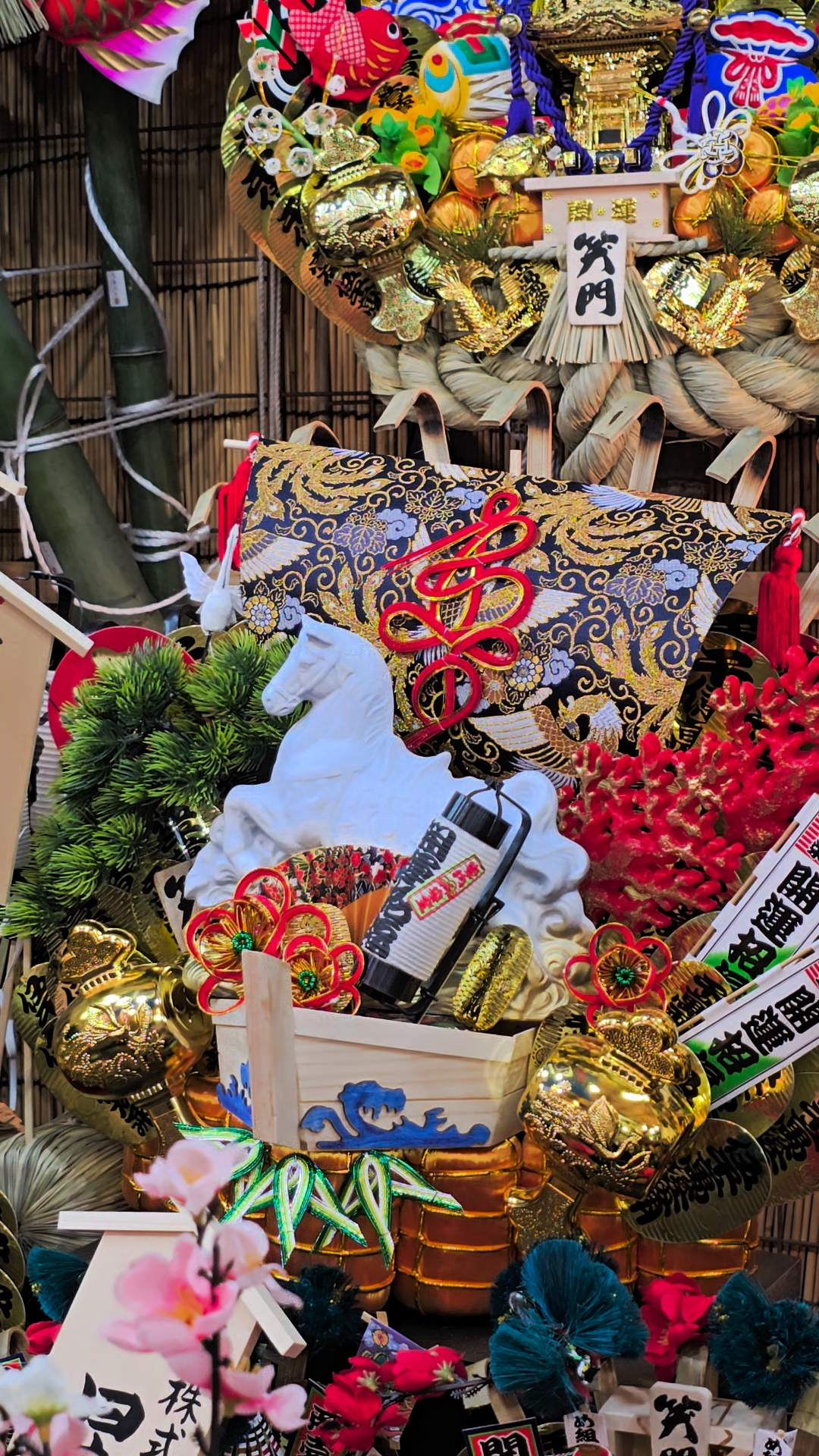 상인들이 한 해의 장사운과 번영을 기원하며 쿠마데를 구입한다.