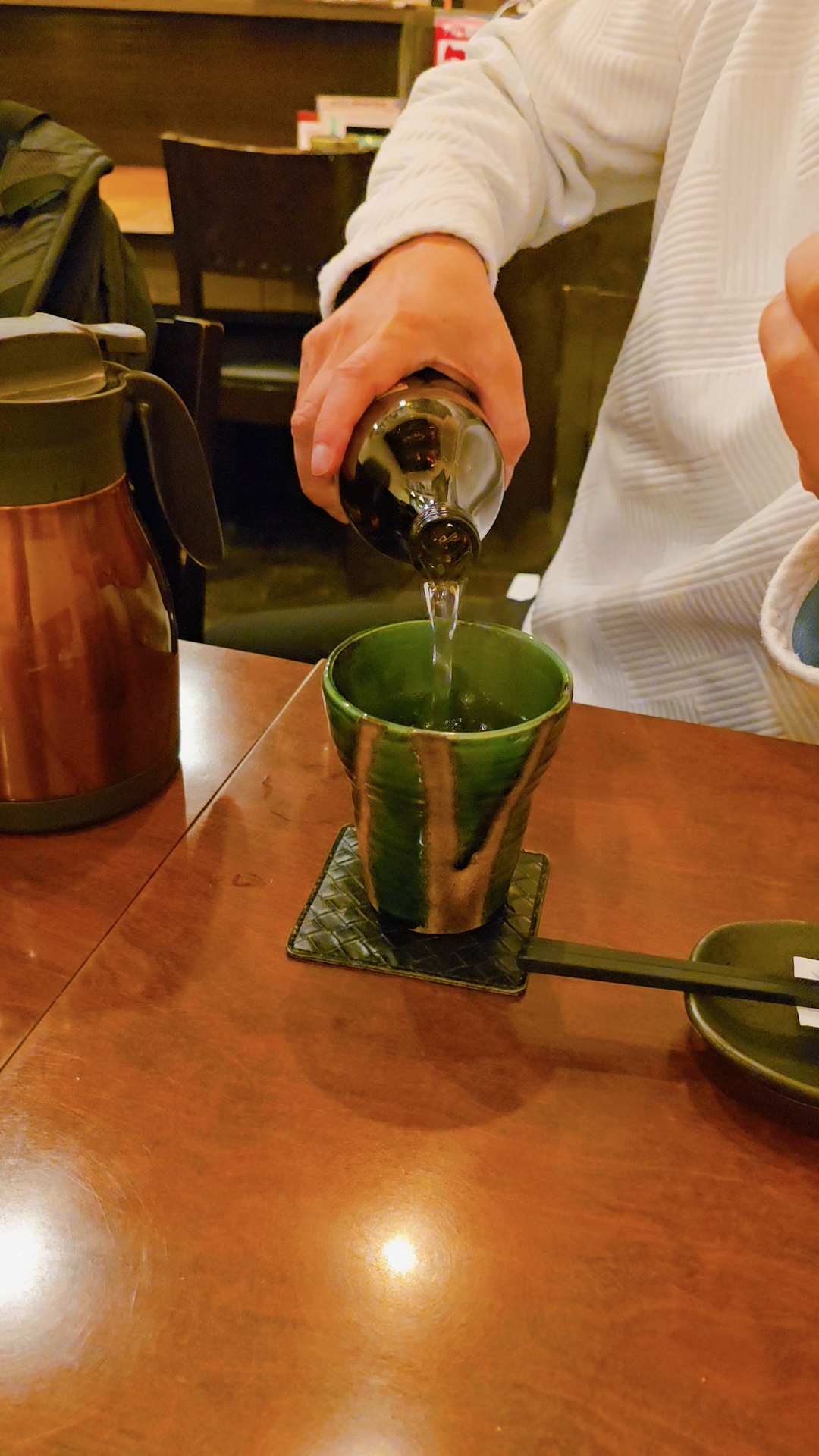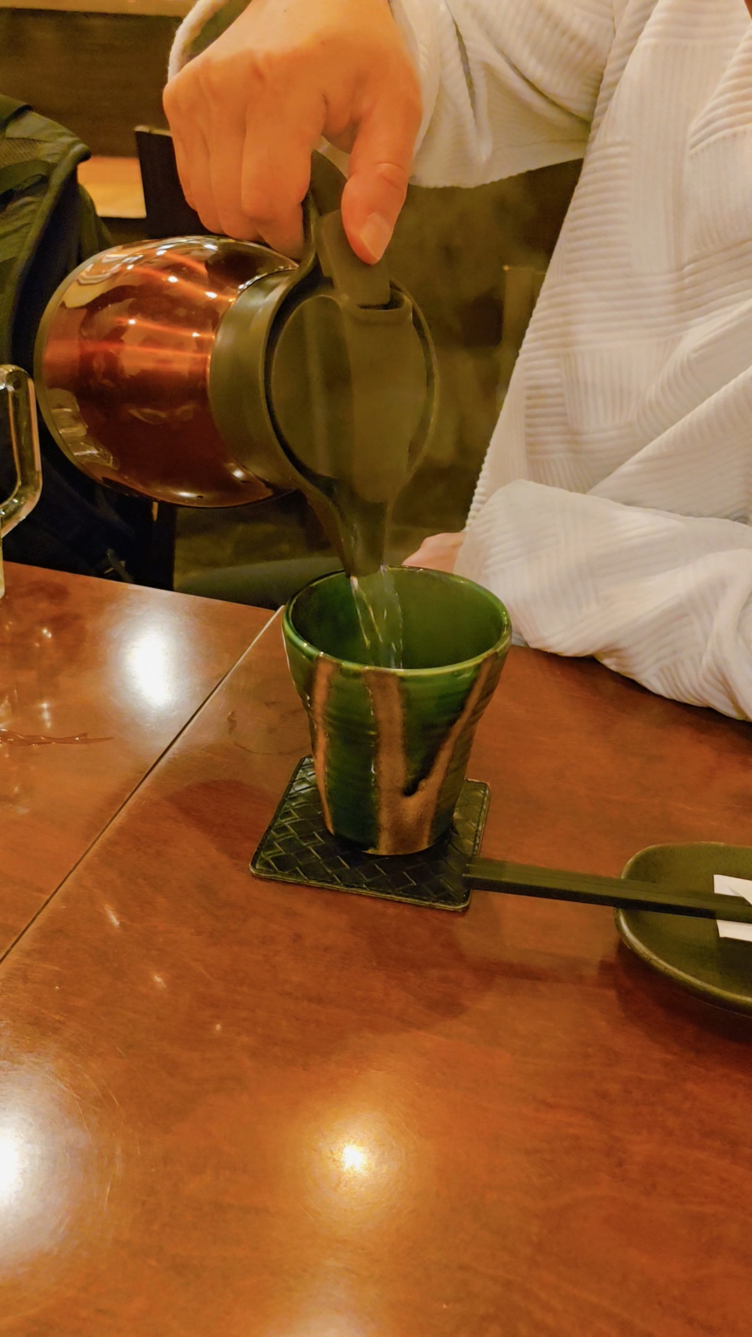 가게가 준비해준 뜨거운 물 담은 주전자와 주문한 아카키리시마