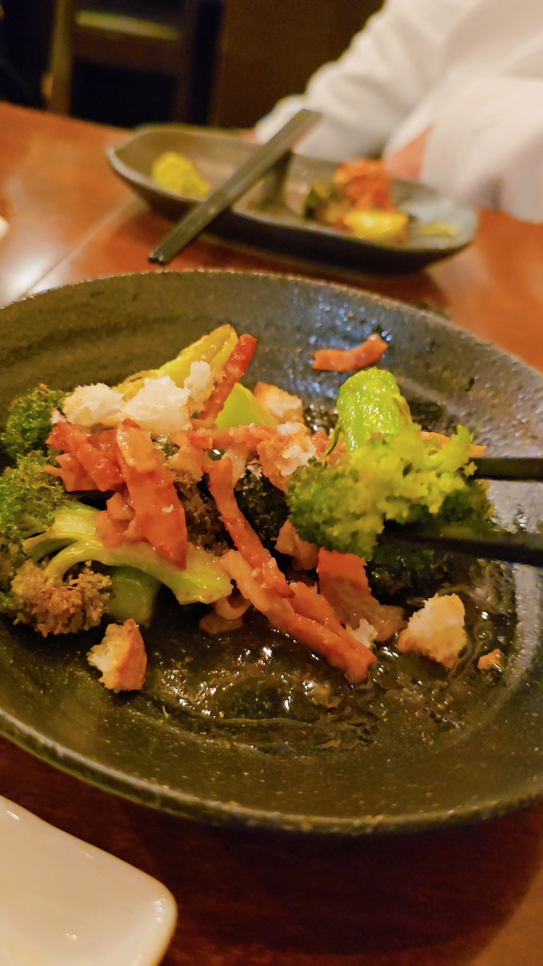 브로콜리 꽃 부분??이 튀기니까 아삭바삭 꼬들한게 기름을 먹었지만 너무 맛난다.