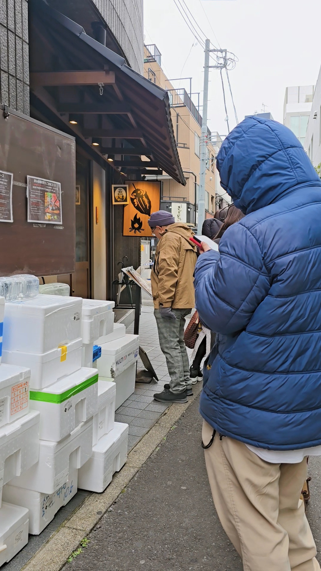 골목이라 사잇바람이 세서 사람들이 모자까지 쓰고 발을 동동 구르는 중..
