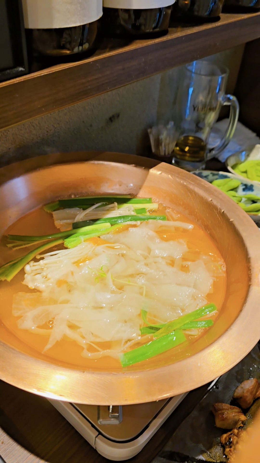 감칠맛 나는 가츠오 국물에 부드러운 돼지를 넣어서 샤부샤부..
