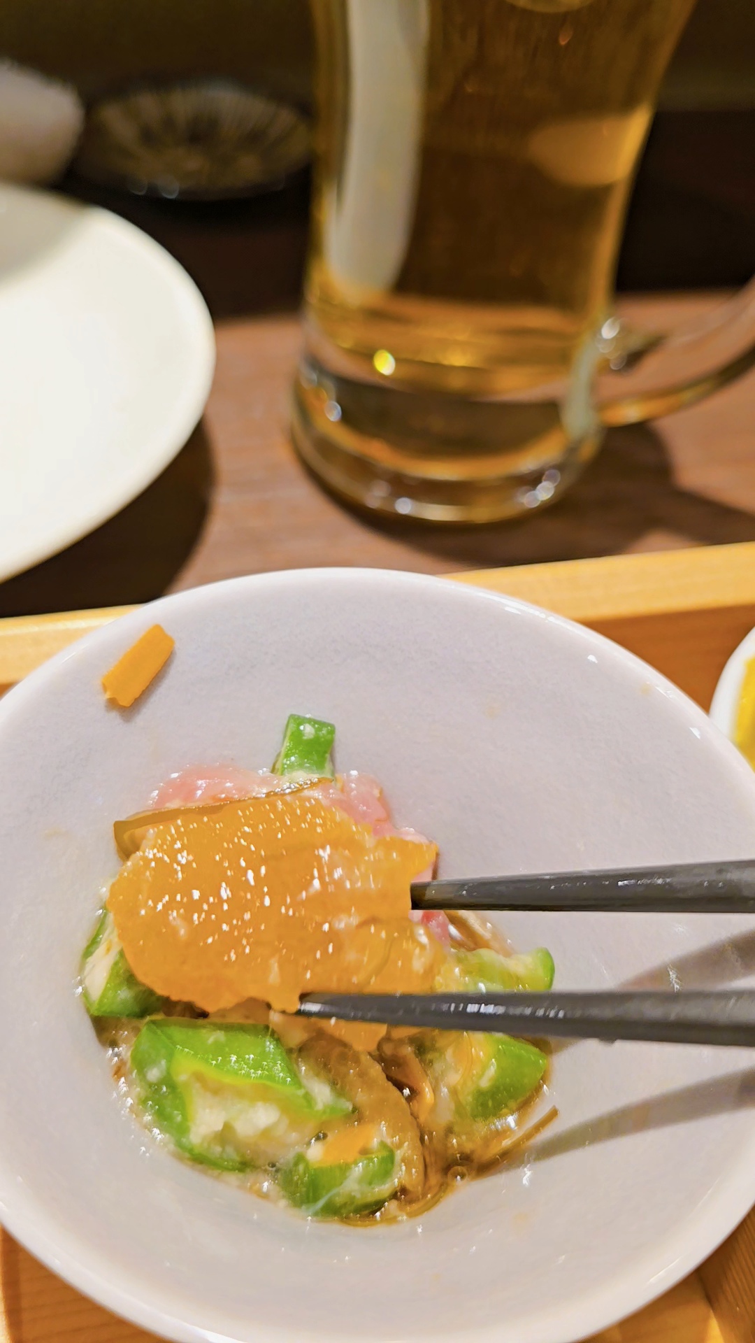 포테이토 샐러드 오쿠라 연어회 캬베츠롤.