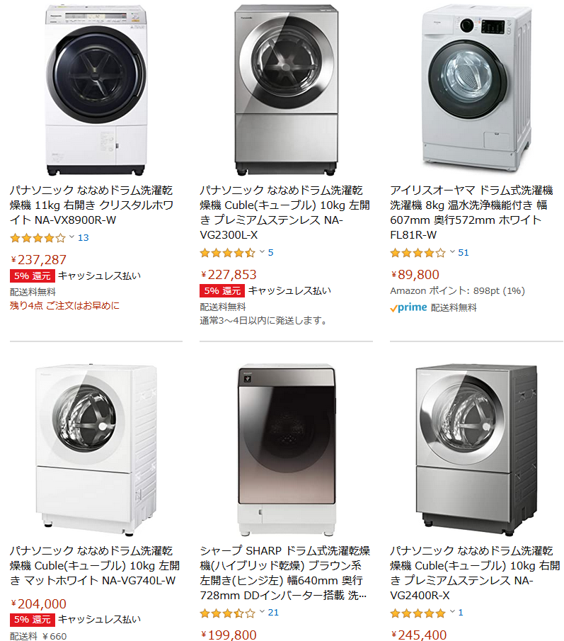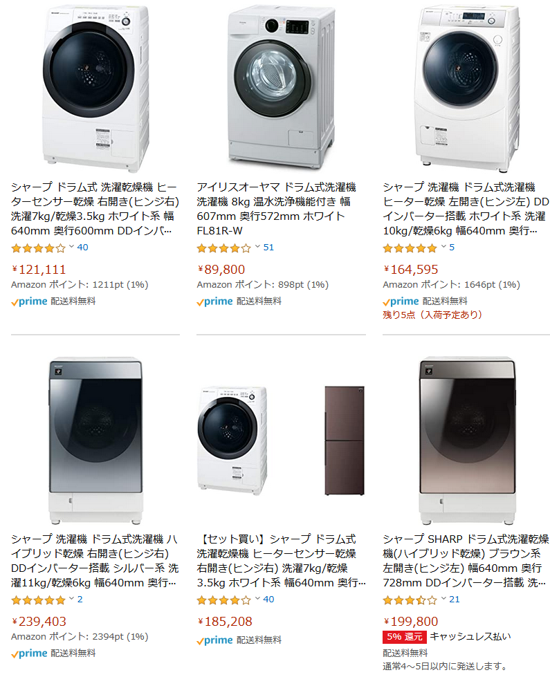 드럼 세탁기는 아마존에서 검색해 봤습니다.